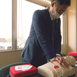 研修内容は、心肺蘇生の基本的な手順、AED使用時の注意点からAEDの使用方法についてを学び、最後に実技練習を行いました✎
